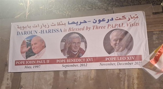 -افادت "الوكالة الوطنية للاعلام" بان حشودا من المواطنين اصطفوا على اوتوستراد زوق مكايل - كسروان، بانتظار مرور موكب البابا لاوون في طريقه الى السفارة البابوية، حيث ينتظره امام مدخل السفارة، حشد من اهالي درعون - حريصا، حاملين الاعلام البابوية، وسط قرع اجراس الكنائس في المنطقة.