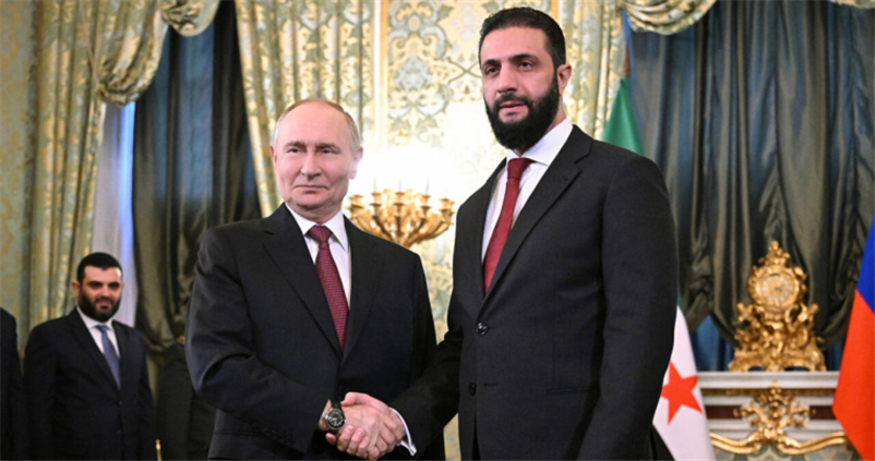 أكّد الرئيس السوري الانتقالي أحمد الشرع أن "دمشق تريد إعادة تعريف العلاقات مع موسكو"، وذلك خلال أول لقاء له مع الرئيس الروسي فلاديمير بوتين.