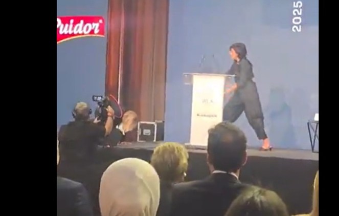 انتشر عبر مواقع التواصل الاجتماعي فيديو لتعثر السيدة الاولى نعمت عون أثناء صعودها على المسرح في أحد الفعاليات.
