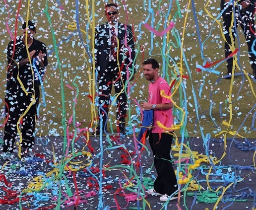 اختتم الأرجنتيني ليونيل ميسي جولته السريعة التي شملت أربع مدن هندية بظهور مقتضب في ملعب آرون جايتلي في نيودلهي يوم الاثنين وهطلت عليه قصاصات ورقية ملونة بينما شجعته الجماهير بحماس جامح خلال ظهوره الذي استمر نصف ساعة.