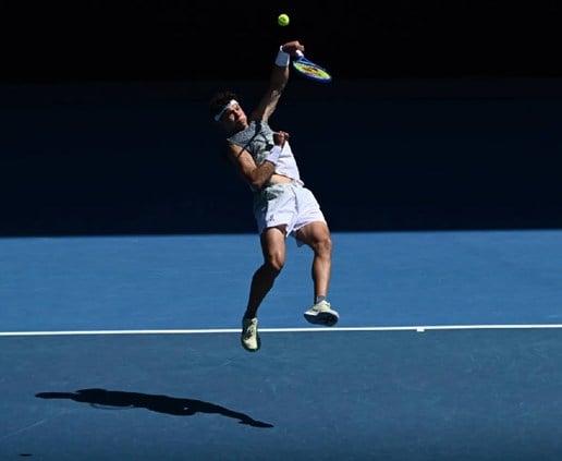 وأشعل شيلتون الأجواء منذ البداية بعد ضربة إرسال ساحق مذهلة بلغت سرعتها 229 كيلومتراً في الساعة في النقطة الثانية خلال المباراة، وكسر إرسال منافسه مبكراً، ليتقدم (3-1).