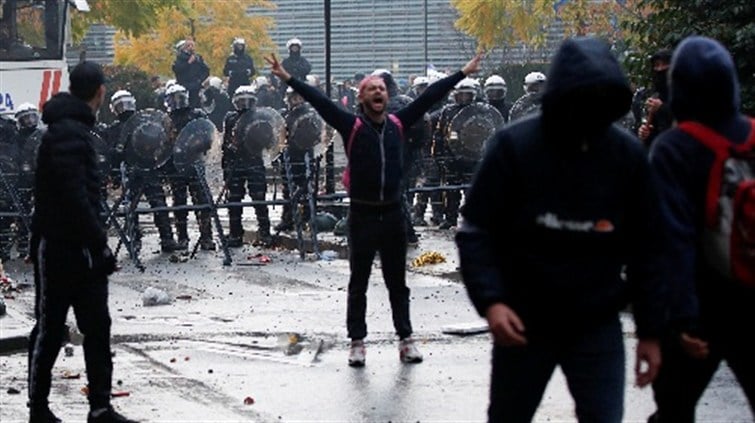 ووفقاً لـ«وكالة الأنباء الألمانية» اندلعت اشتباكات محدودة بين الشرطة والمتظاهرين، الذين كان يقوم بعضهم بالعزف على الطبول والأبواق، كما أضرموا القنابل الدخانية، ورددوا شعارات مناهضة لخفض الميزانية وبرامج الرعاية الاجتماعية.