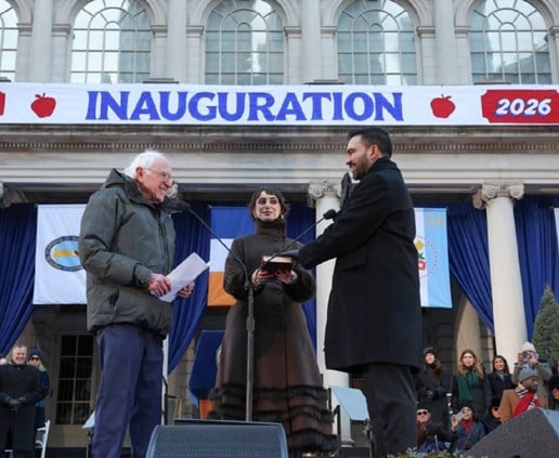 وبعد مراسم التنصيب التي جرت ضمن دائرة محدودة، تقام مراسم قرابة الظهر في مقر البلدية، يترأسها اثنان من أبرز شخصيات اليسار الأميركي، السناتور بيرني ساندرز والنائبة ألكسندرا أوكازيو كورتيز.