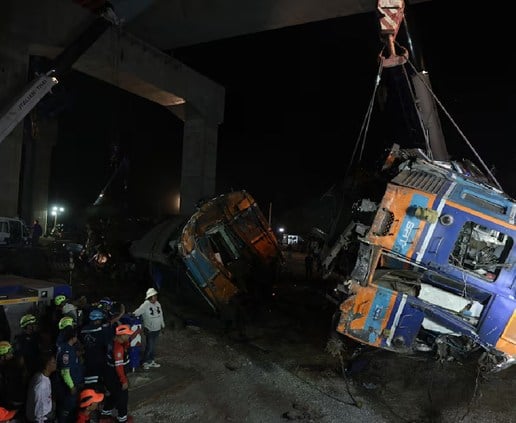 وأظهرت لقطات سابقة لموقع التحطم الذي تحققت منه رويترز أفراد إنقاذ وهم يحاولون انتشال الضحايا من إحدى العربات المدمرة، مع نقل بعض الركاب المصابين بجروح بالغة إلى سيارات إسعاف.