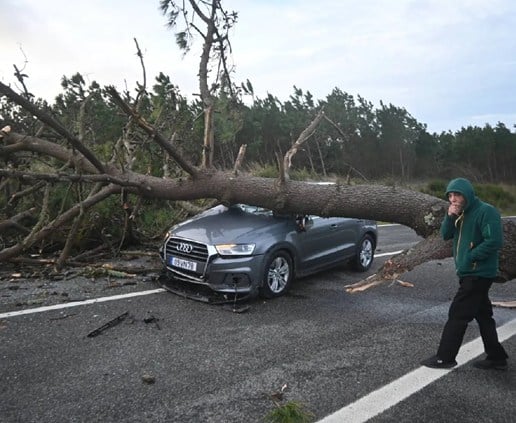 -وأفادت الهيئة الوطنية للحماية المدنية بمصرع شخص في فيلا فرانكا دي شيرا، إحدى ضواحي لشبونة، إثر سقوط شجرة على سيارته. ولقي شخص آخر مصرعه جراء انهيار هيكل معدني في مونتي ريال في منطقة ليريا (وسط البرتغال)، وفق الحماية المدنية.