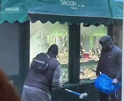 📹 The suspects fled with the jewellery despite attempts by staff to intervene, while bystanders looked on https://t.co/MvUCCG2Goj pic.twitter.com/FeBEIV7Q3E
