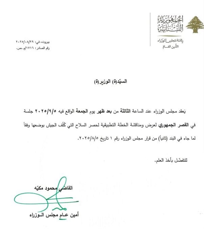 بالصورة: هذا هو موعد جلسة مناقشة "خطة حصر السلاح"!