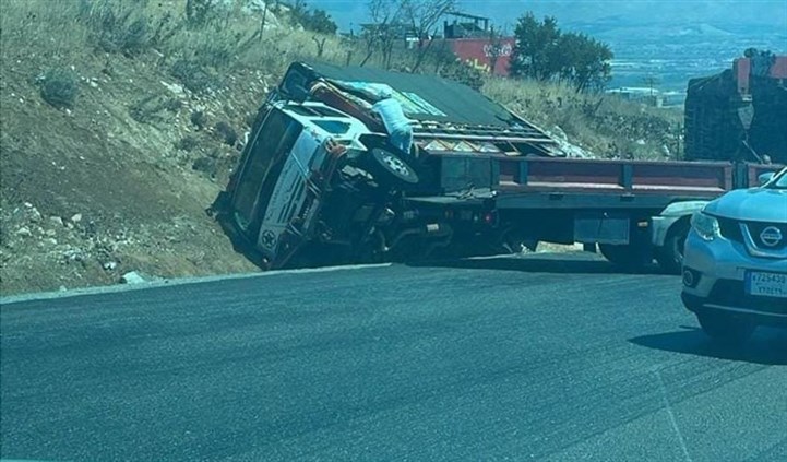 بالصورة - على طرق ضهر البيدر... انقلاب بيك آب!