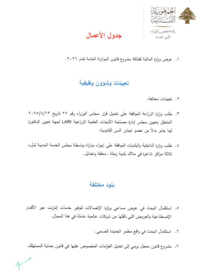 جلسة لمجلس الوزراء بعد غد الخميس... ماذا في جدول الأعمال؟