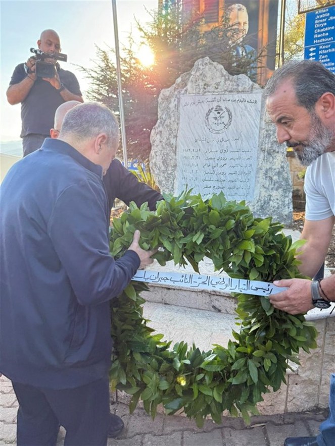 بالصور - باسيل جال في بعض قرى البترون ووضع إكليلاً من الزهر على نصب شهداء ١٣ تشرين في بجدرفل