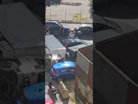 بالفيديو - حادث سير بين شاحنتين عند تقاطع العازارية - المركزية