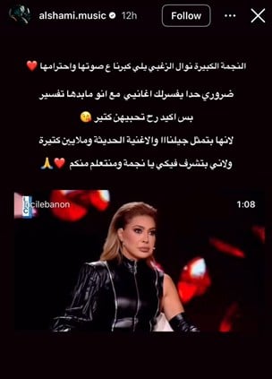 بعدما قالت انها لا تفهم أغانيه.. الشامي يرد على نوال الزغبي (صورة)