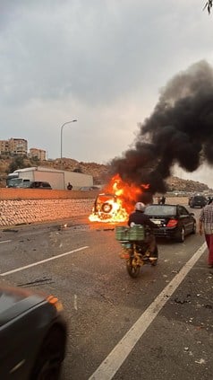 بالصورة - احتراق سيارة على أوتوستراد الجية