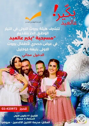 هيئة بيروت الأولى في التيّار تقدّم مسرحية "بكير عالعيد" في عرض حصري لأطفال بيروت الأولى (الدخول مجاني)
