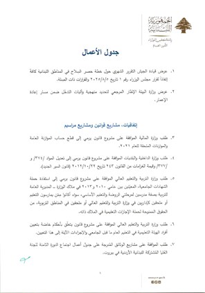 إليكم جدول أعمال جلسة مجلس الوزراء!