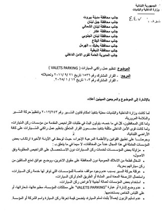 عن الـ"Valets Parkings"... قرار لوزير الداخليّة!