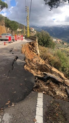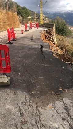 بالصور - بعد انهيار جزء من الطريق الذي يربط بلدتي زرعون والقعقور هيئة القعقور في التيار تتحرك